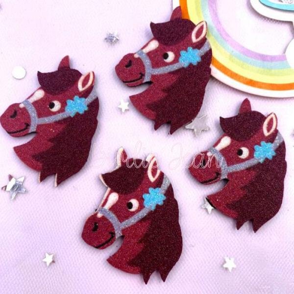 You will receive TWO (2) glitter happy horse embellishments that are CUT, as shown.