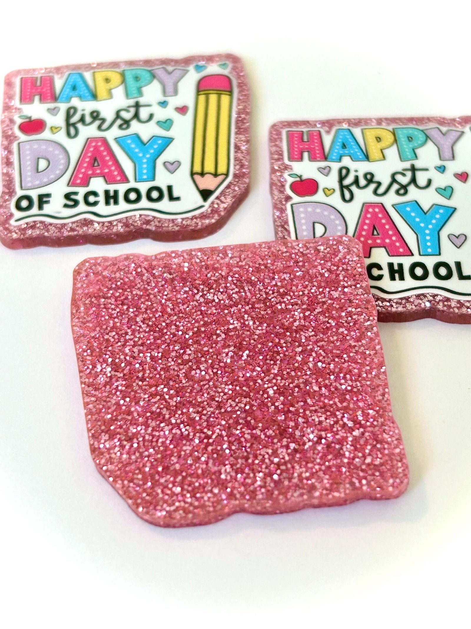 You will receive THREE (3) identical planar resin flatbacks, as shown. Note: These are in our PREMIUM collection, they are MUCH thicker and backed with pink glitter resin and they measure 45mm