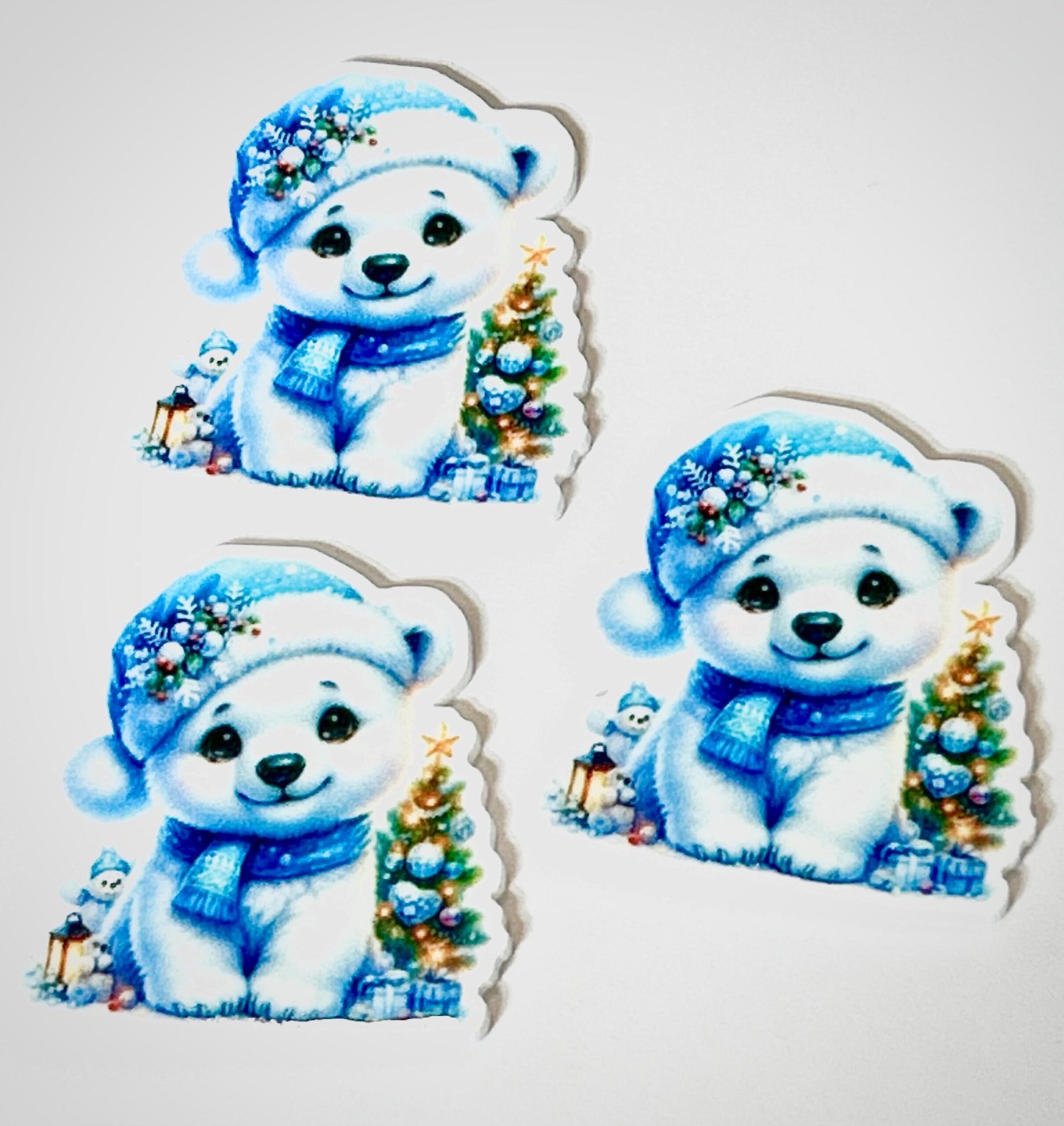 3 blue Christmas planar Resins, baby polar bear planars, hair bow centers, focals, craft supplies, bows, badge reels, winter planars, charms