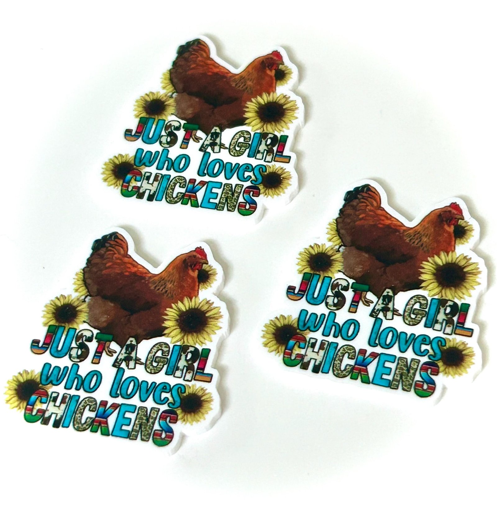 3 Girl who loves chickens Planar Resins, Flatbacks, planars, hairbow, hair bow centers, focal, craft supplies, jewelry, DIY croc charms
