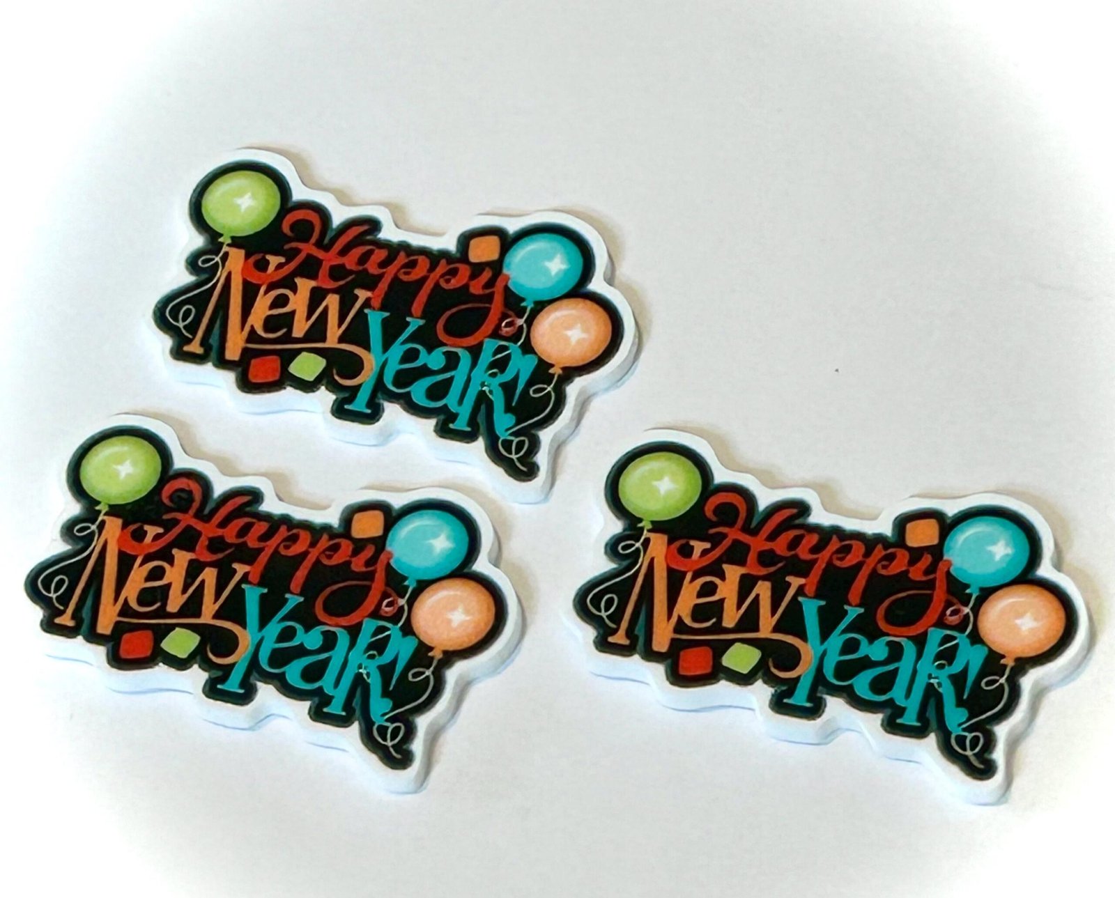 3 happy new year Planar Resins, Flatback planars hairbow hair bow centers, focal,craft supplies, NYE bows, fake bake, embellishments, DIY