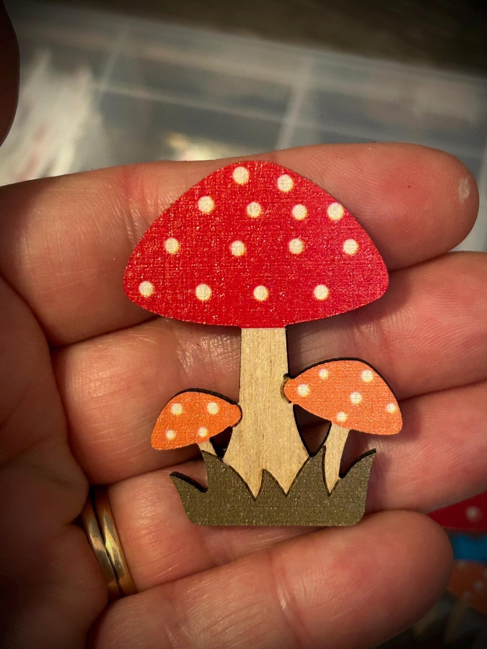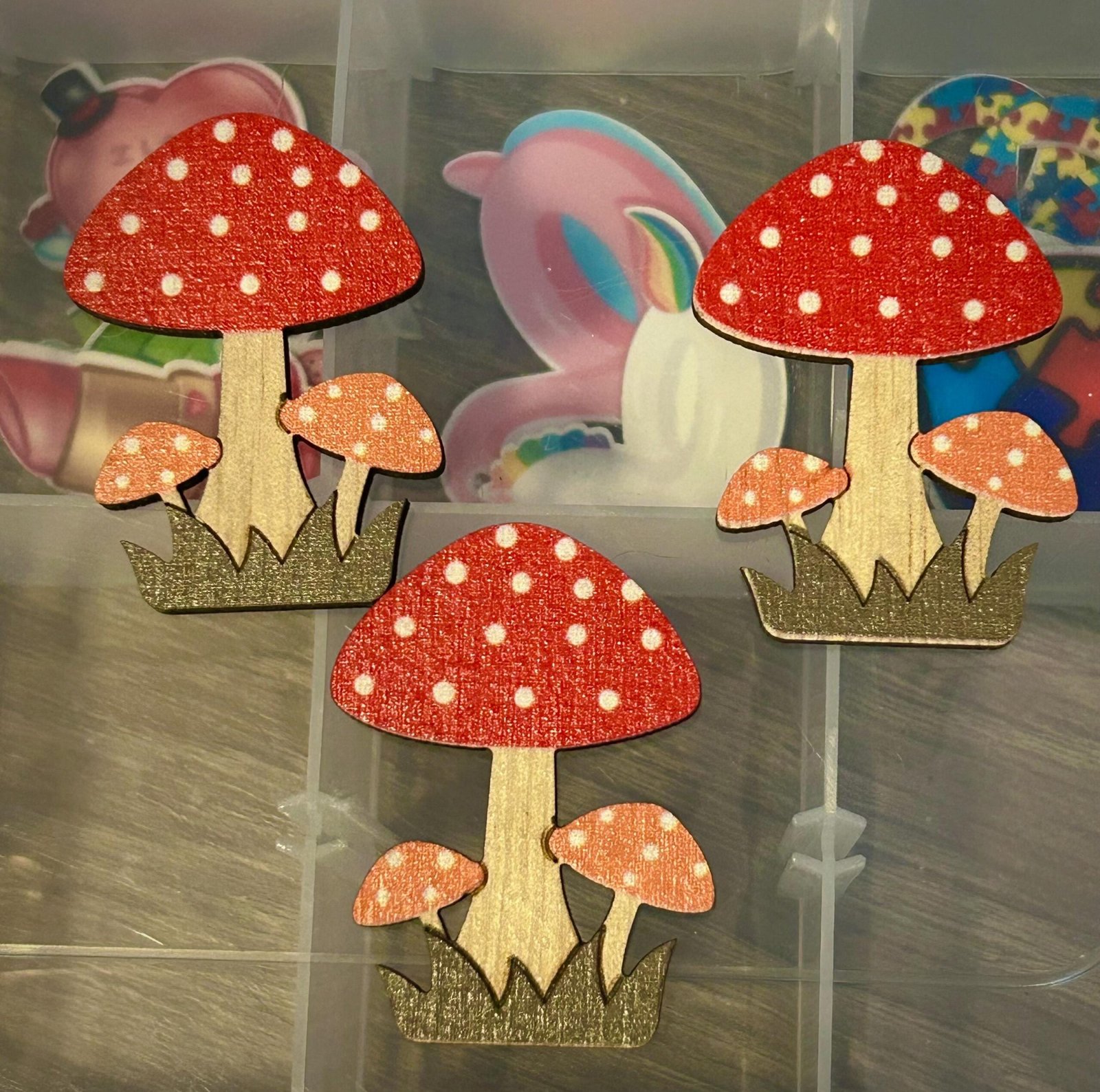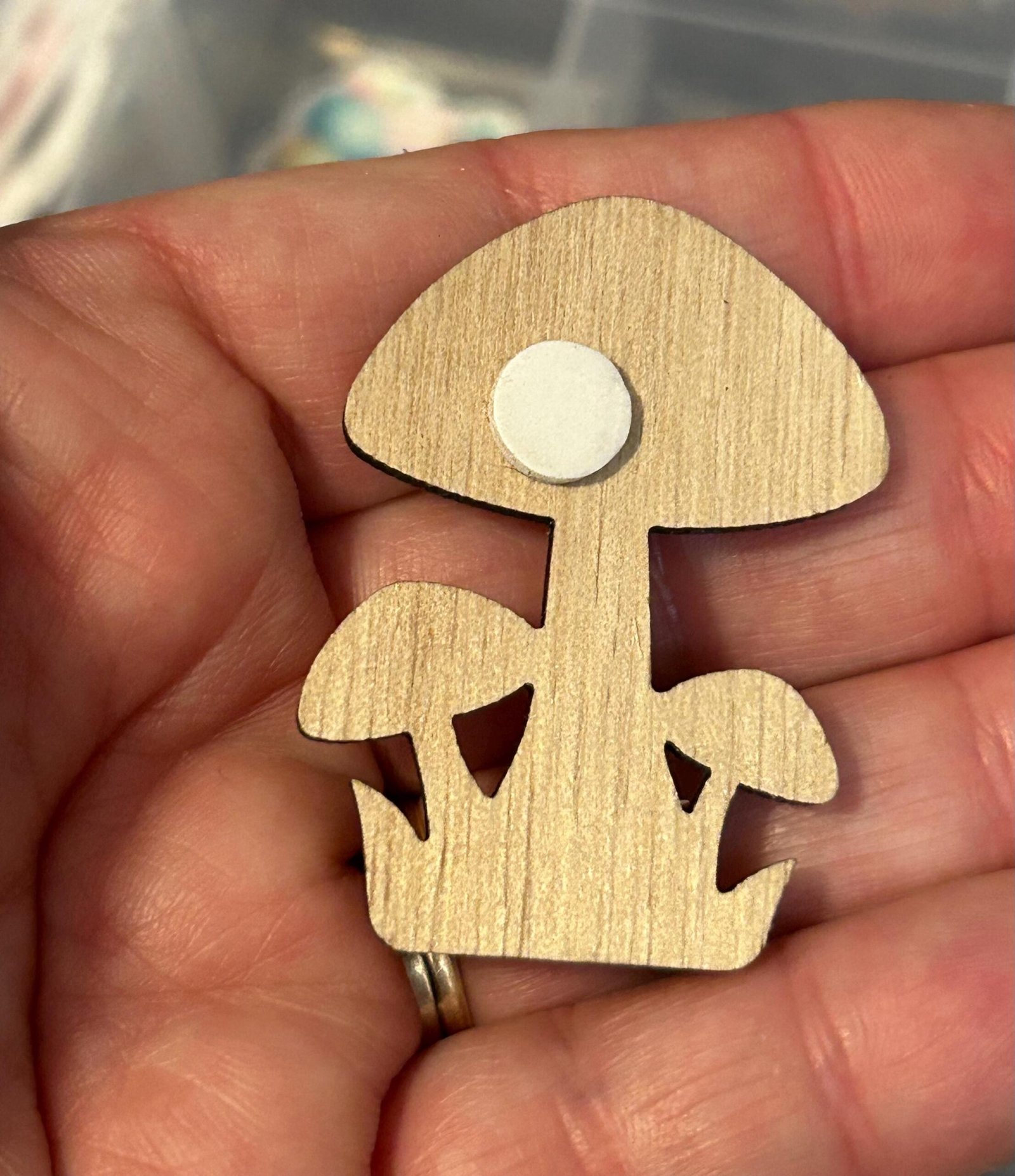 three wood stained mushroom accent pieces for crafting
