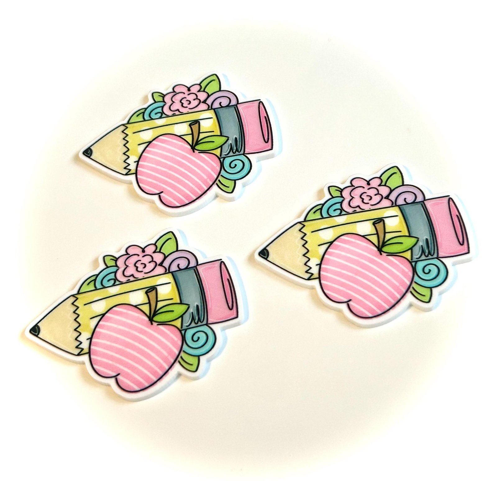 You will receive THREE (3) identical planar resin flatbacks, as shown.