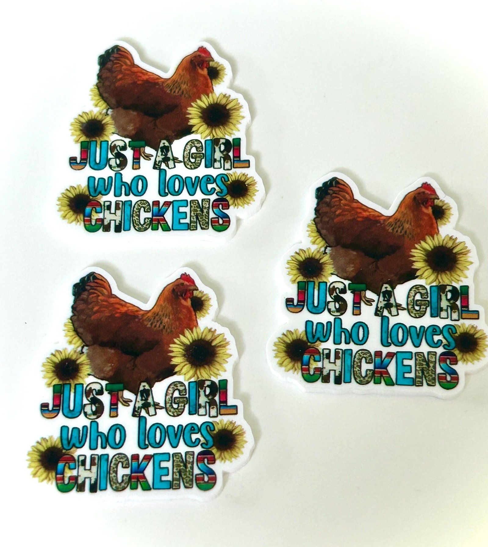 3 Girl who loves chickens Planar Resins, Flatbacks, planars, hairbow, hair bow centers, focal, craft supplies, jewelry, DIY croc charms
