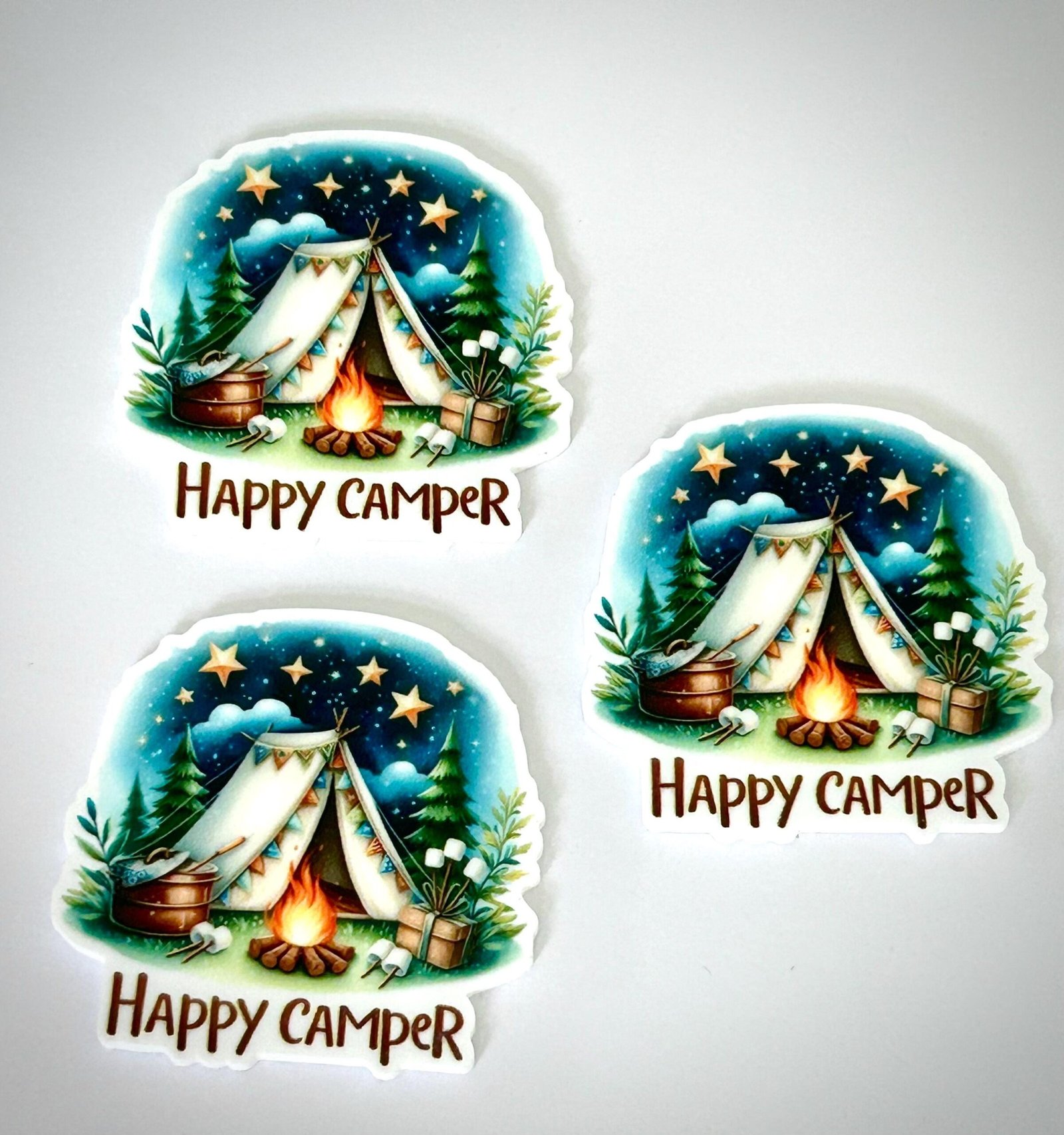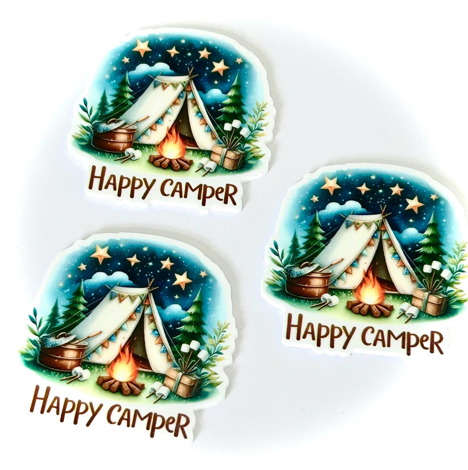 3 Happy Camper Planar Resins, camping Flatbacks, focal, hair bow supplies, craft supplies, resins, cabin, soap, DIY bows, glamping, RV