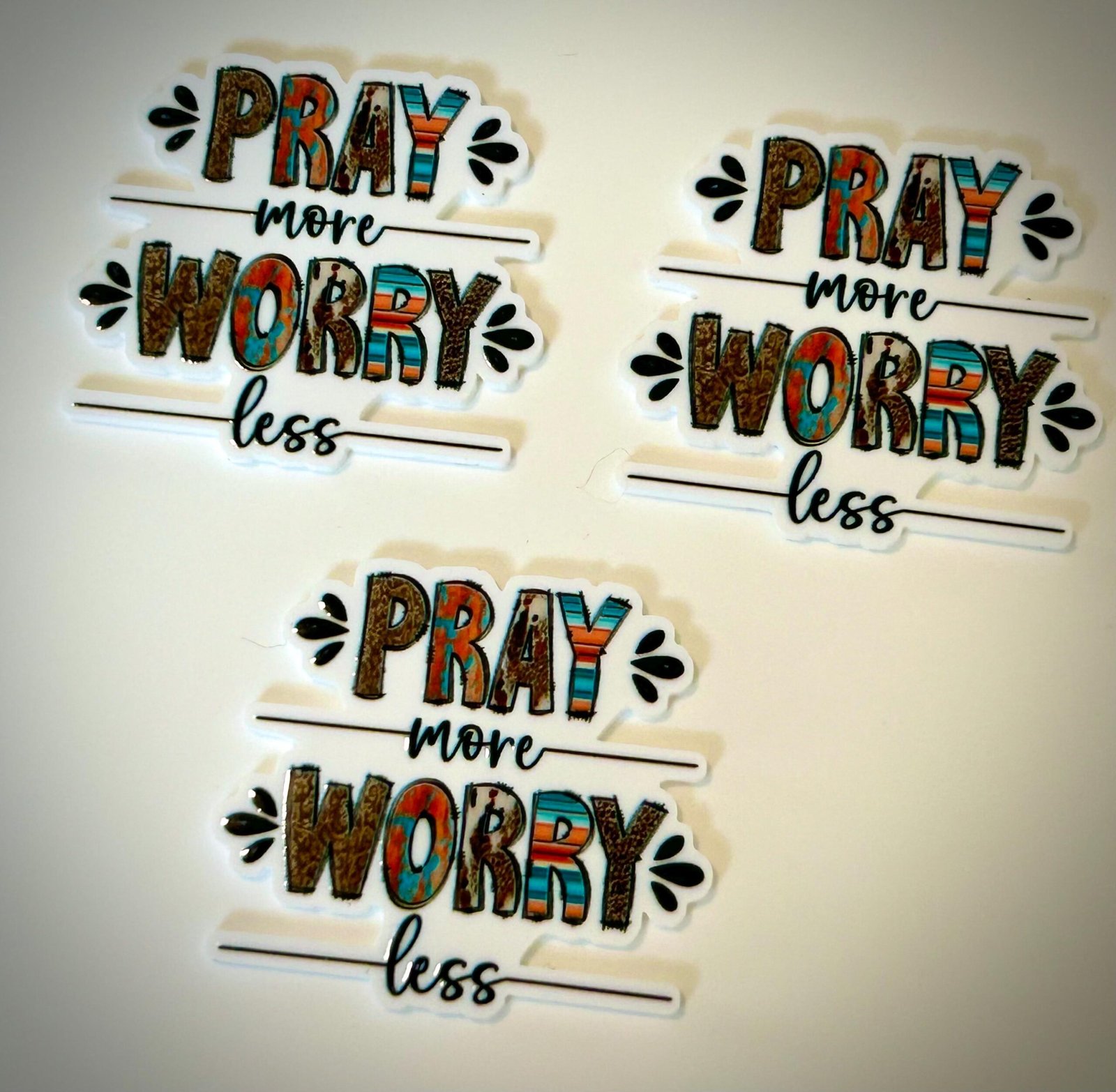 3 Pray More Worry Less Planar Resin Flatbacks, focal, hair bow supplies, craft supplies, supplies for making bows, soap, badge reel, charms