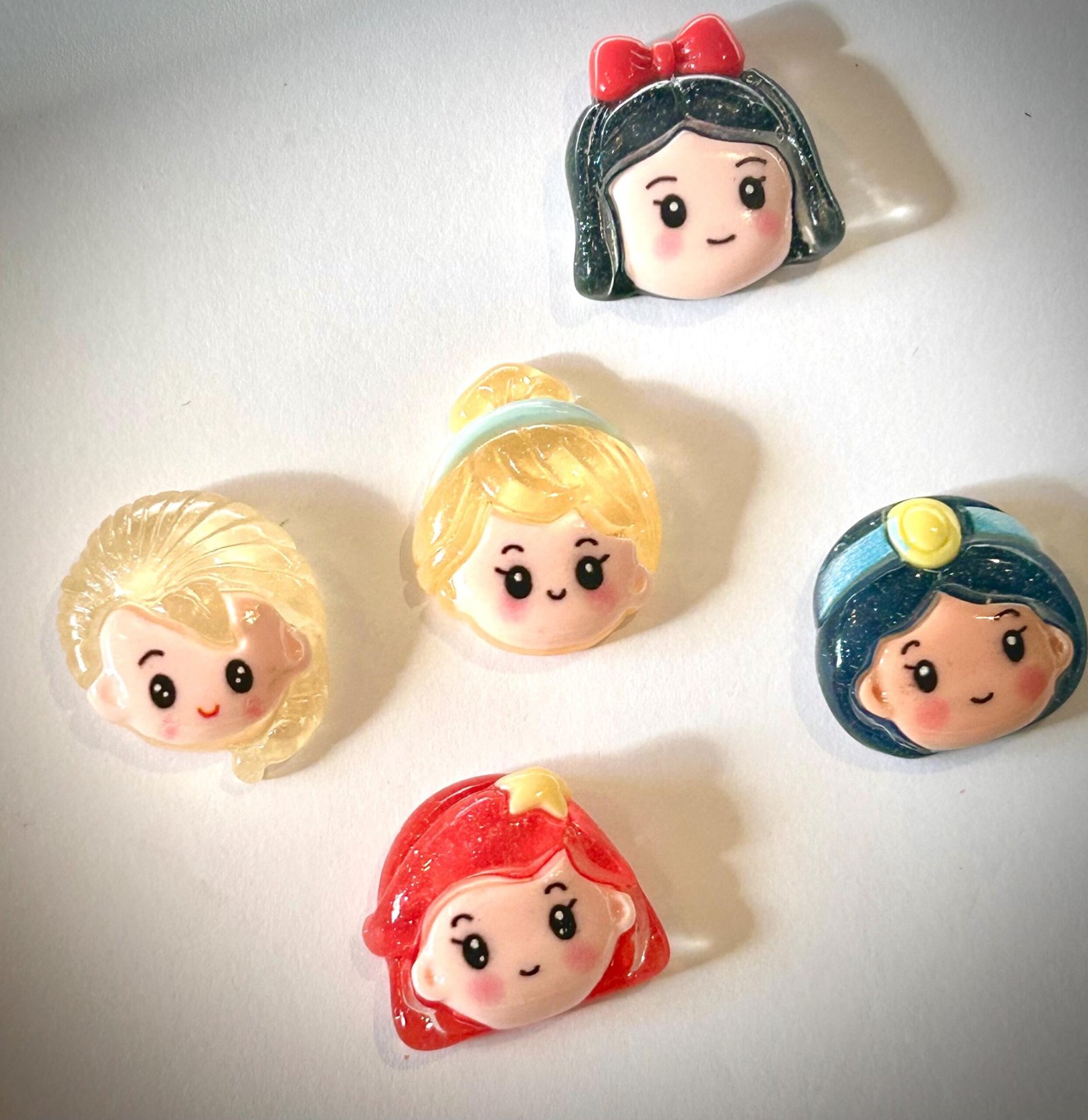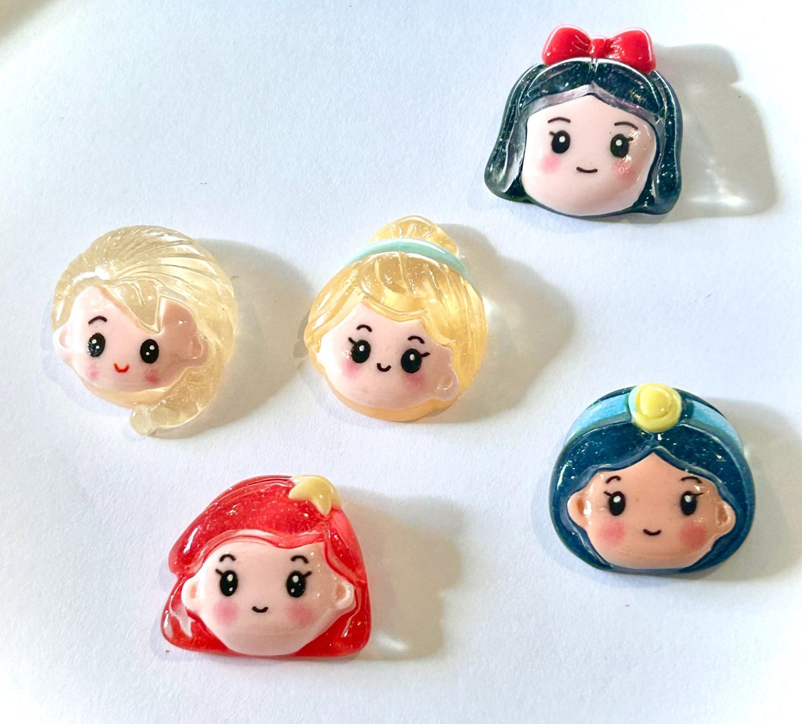 You will receive Five (5) resin Flatbacks, one of each princess, as shown